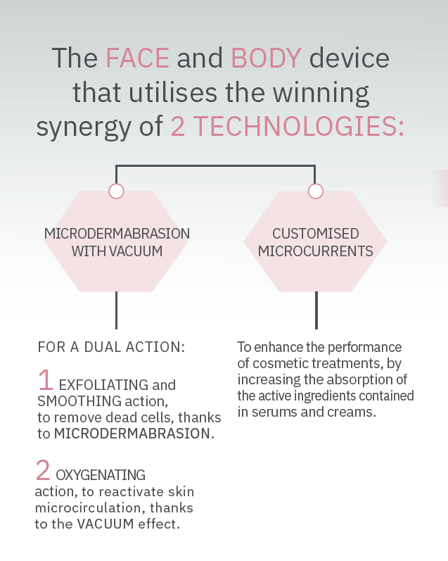 First, delicate microdermabrasion works to remove layers of dead skin cells that can make the skin look lacklustre and dull. Then we infuse the deepest skin layers with active ingredients, with the aid of powerful microcurrent technology.